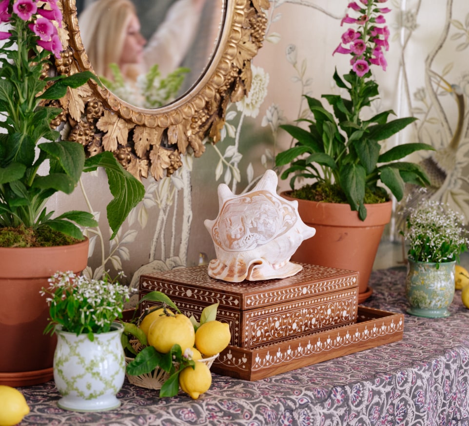 Meticulously handcrafted from sustainably sourced teak and delicately inlaid bone, The Box is a keepsake in its own right. The intricate floral motif nods to centuries-old Indian craftsmanship, while the thoughtfully designed compartments and interior mirror offer both beauty and function.