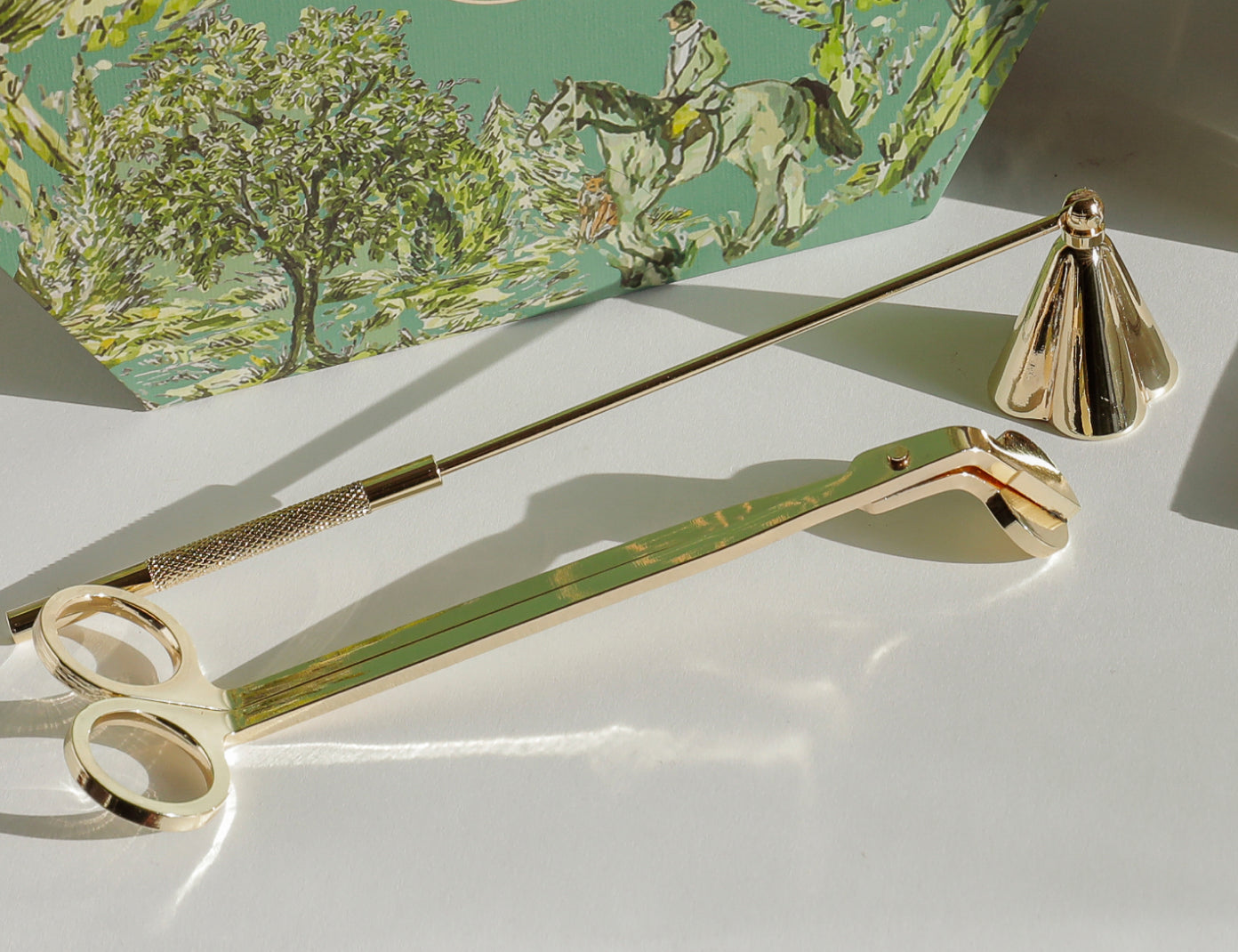Our candle accessory set reimagines traditional candle-keeping tools for the modern home. Featuring a precision wick cutter and snuffer, these handcrafted tools blend functionality with timeless beauty. The warm brass finish adds a touch of vintage charm to any decor, while ensuring optimal candle performance. Our wick cutter creates the perfect trim for a clean burn, and the snuffer gently extinguishes flames, preserving fragrance. Whether for yourself or as a thoughtful gift, these artisanal pieces bring sophistication to every flicker of light.